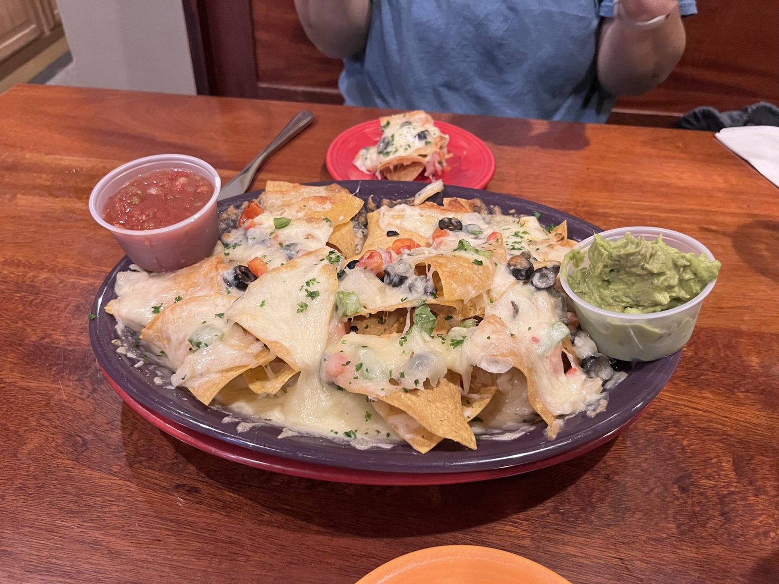 After ordering drinks which were easy. Tina wanted water, and I ordered the C Monster draft. (C Monster • IPA – American • 6% ABV • 65 IBU Our American IPA is brewed with a blend of “C” hops. This beer has a traditional IPA bitterness, accompanied by balanced notes of citrus, pine, and resin.) we decided to order Nachos Grande. These chips were piled high and topped with diced onions, peppers, black olives, and cheddar cheese. It came with their homemade salsa, and we added some guacamole and sour cream.