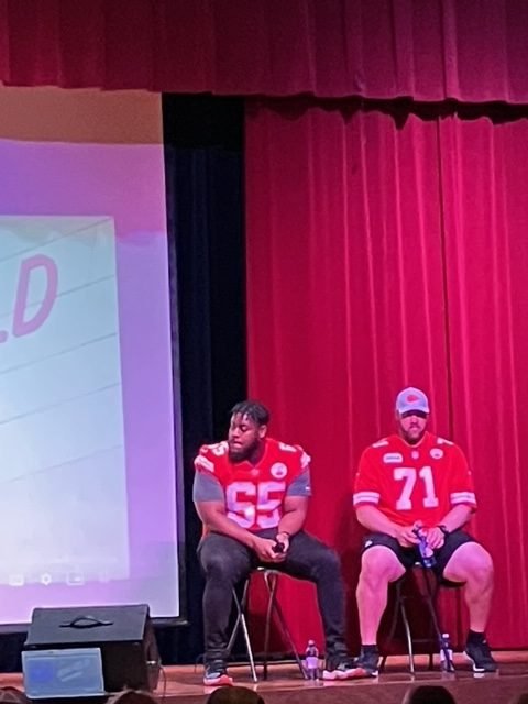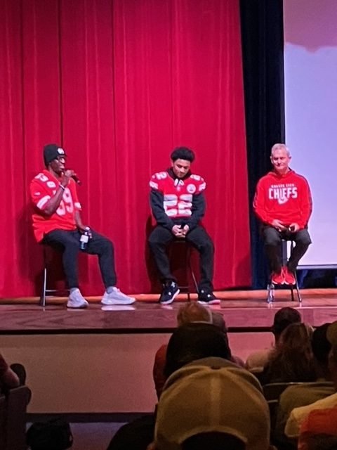 A Chiefs chat ends the activities in the high school auditorium, like when Mitch does his radio show during the football season at various Hy-Vee markets in KC, and recreates it for the Smith Center audience.