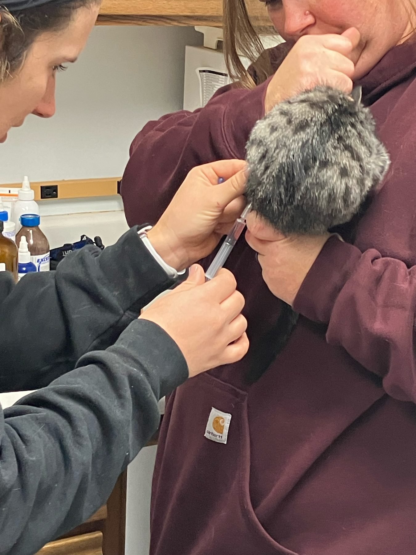 2. Distemper (respiratory) (FVRCP) vaccination was given with a needle. This is the first dose, and I must return the kittens to the clinic on December 29 th for another dose of distemper vaccines.