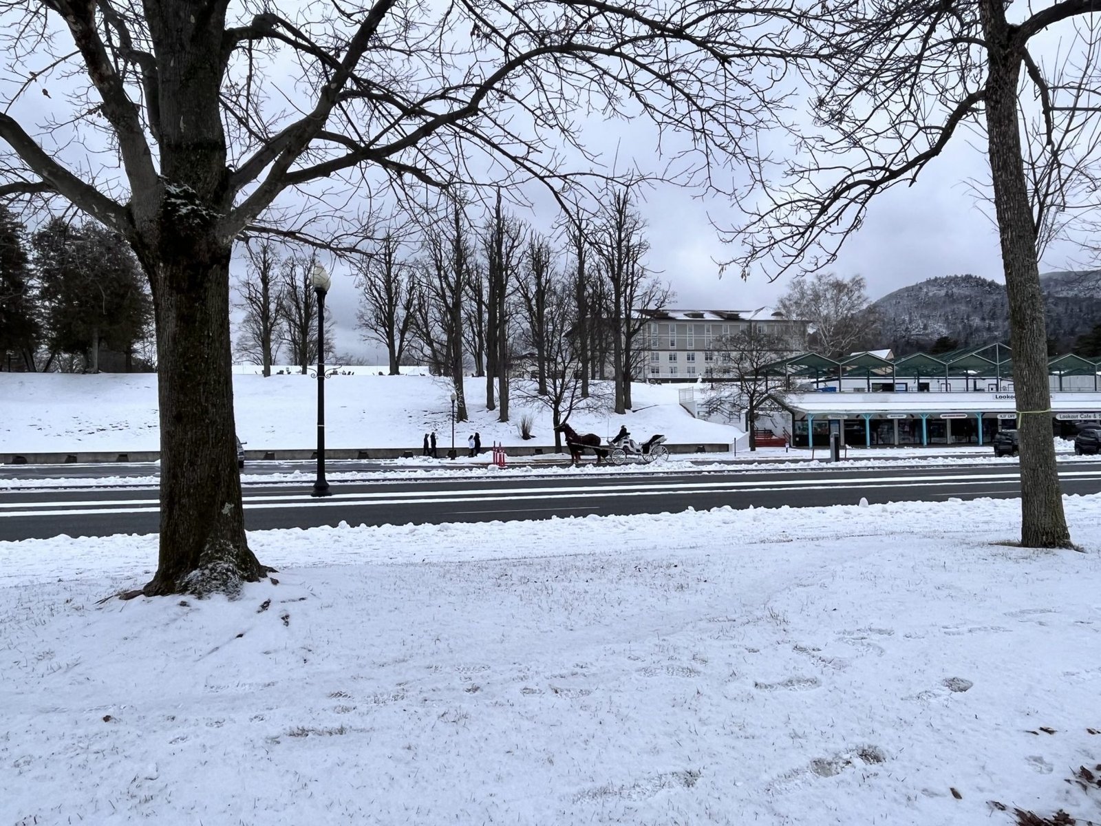 Delayed a week, I could feel the need to get away increase. Finally, it was Saturday morning. Walking Jacob up, he was quickly ready, and the three of us headed over to get coffee. And then we were on the road. The snow in the mountains and trees was beautiful. (Truth be told, had there been a foot of snow, I would have left.) We talked, and Jacob took pictures as we drove. Crossing through Vermont, we were soon at the border of New York state. No sooner did we hit the state line than I could feel creativity starting to flow, stress leaving, and anticipation rising.