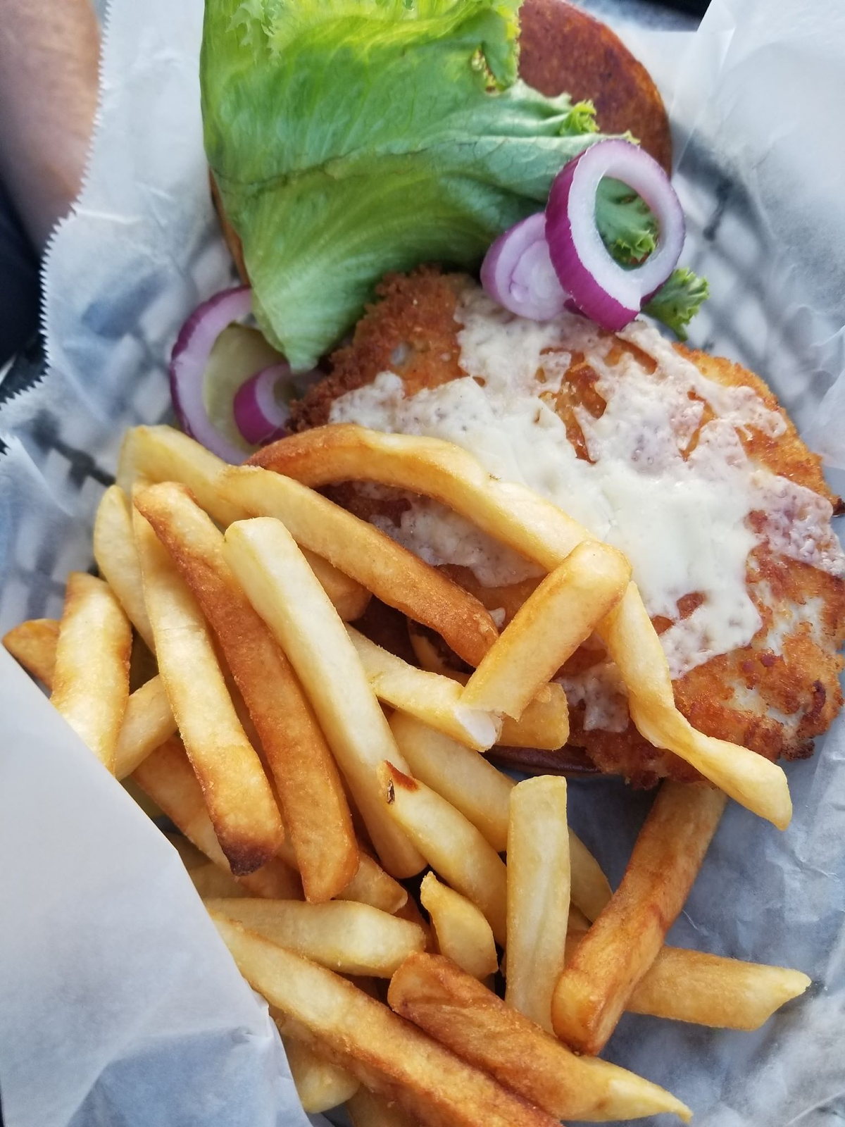 Seafood is hit or miss with so many places, I have found this to be true, ever since moving to the only landlocked state in New England. My family is originally from the coast, I love seafood when it is done well and done right. Patrick’s Pub had quite an array of options containing seafood options. The table next to us had some sort of pasta with what looked to be quite the healthy group of shrimp on top. The cod was cooked to perfection. It had that flakey consistency you expect when you are having white fish. The homemade crab stuffing. WOW!!!