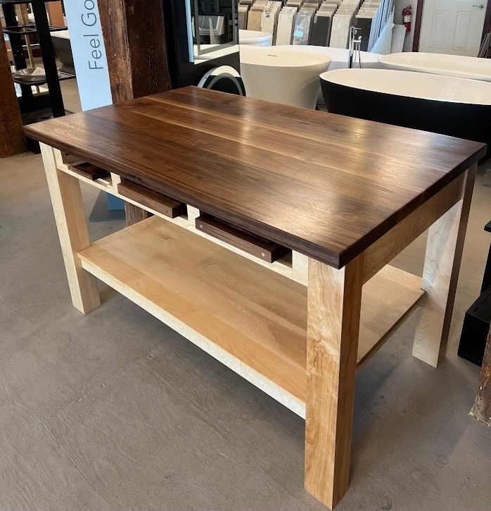 Last year, I was at an area show in the middle of nowhere. While wandering around, I ran into a guy named Phil. He had some very cool woodworking displayed. I shared his name with a friend who has a store that sells kitchen and bath-related products. I told him about the show. Not long after that, Phil and his wife were delivering a gorgeous butcher block table and butcher block cutting boards.