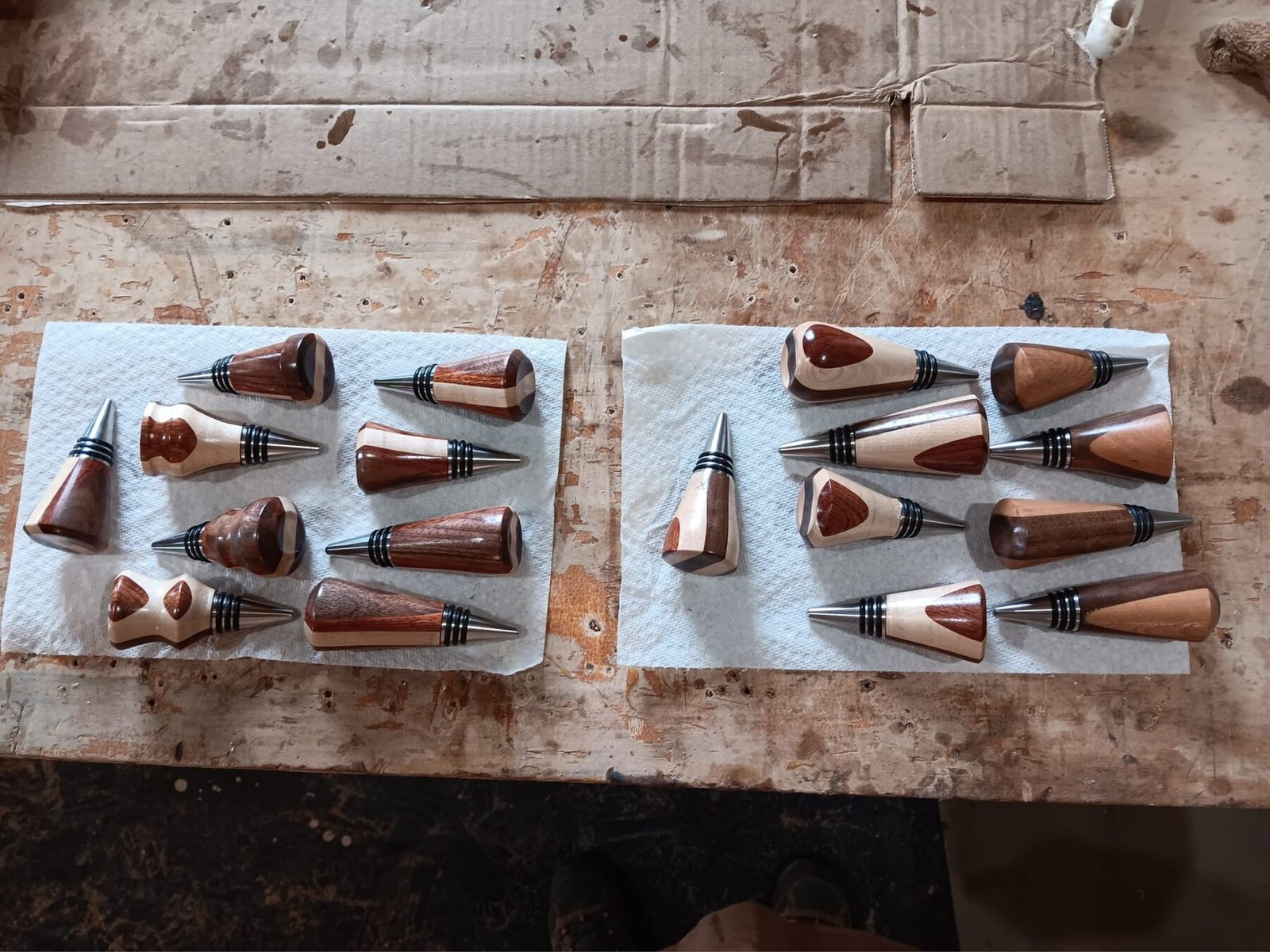 He added wine stoppers to his repertoire. Beautifully turned, stainless steel, and gorgeous to look at.