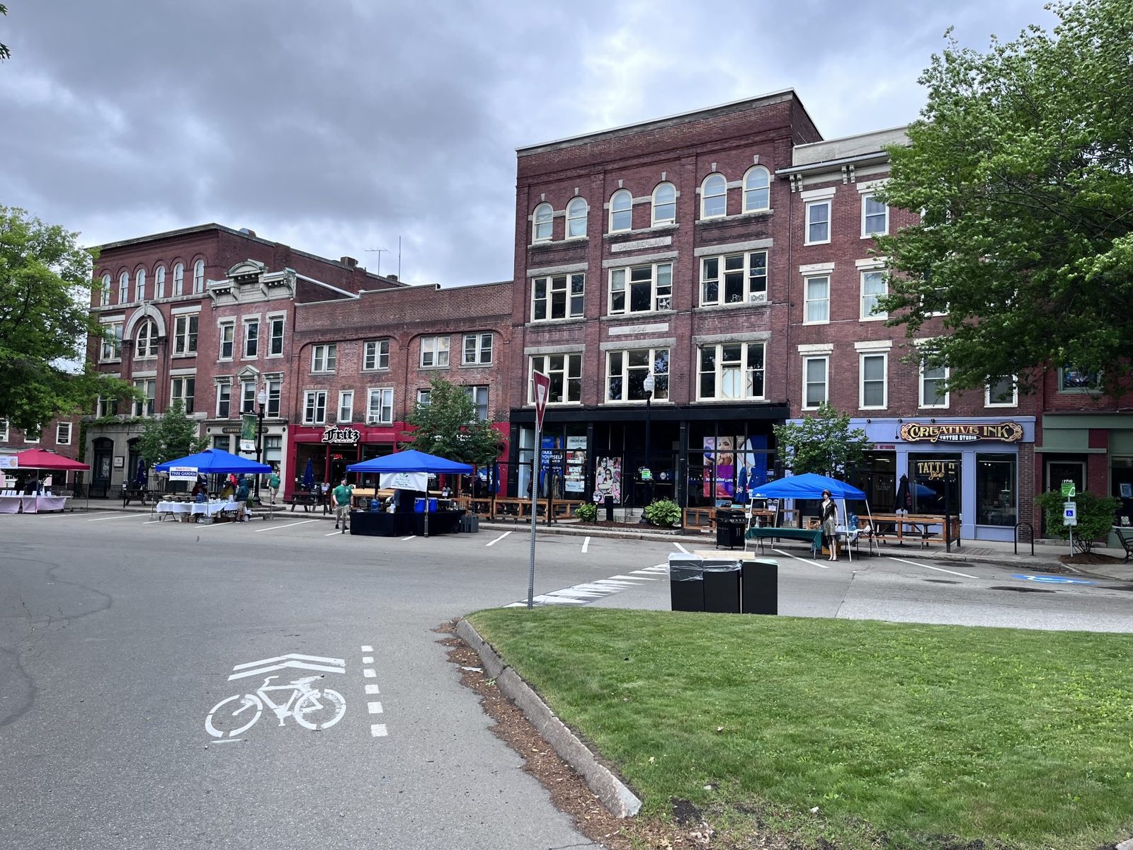 They reserve a block of the city that goes around what is called the Square. They place picnic tables and trash cans around the Square. There are booths where you can purchase tokens, get information, and more to make it user-friendly.