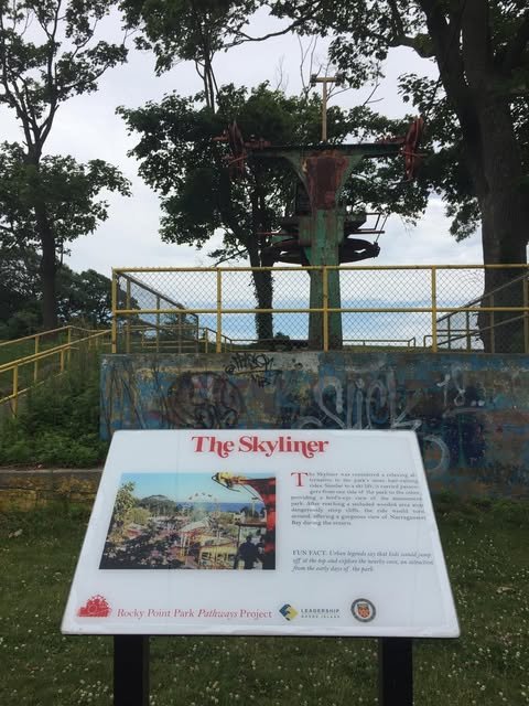 While the rides and attractions of the old Rocky Point Amusement Park are long gone, several remnants still remain, adding a touch of nostalgia to the park. One of the most iconic pieces of the park’s history is the Rocky Point Arch, once from the 1964 World’s Fair and once marked the entrance to the amusement park. This archway still stands today as a reminder of the park’s vibrant past, and it’s a popular spot for photos and a poignant symbol of the many memories the park holds.