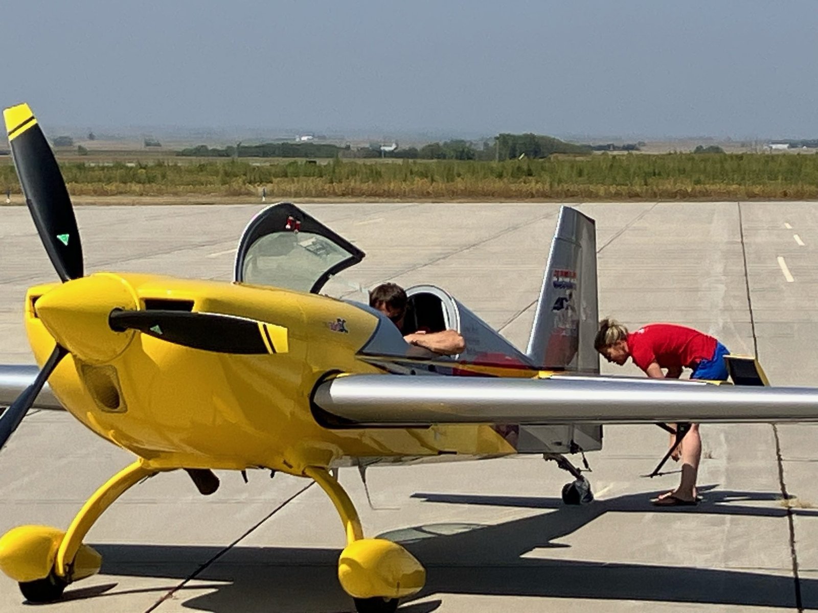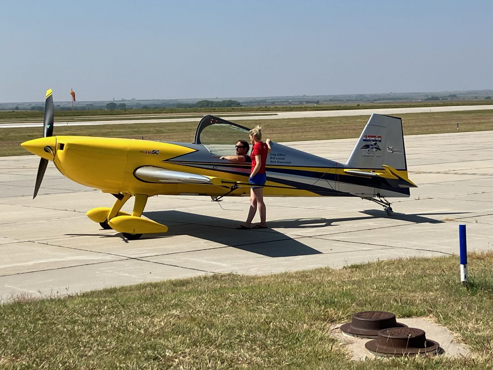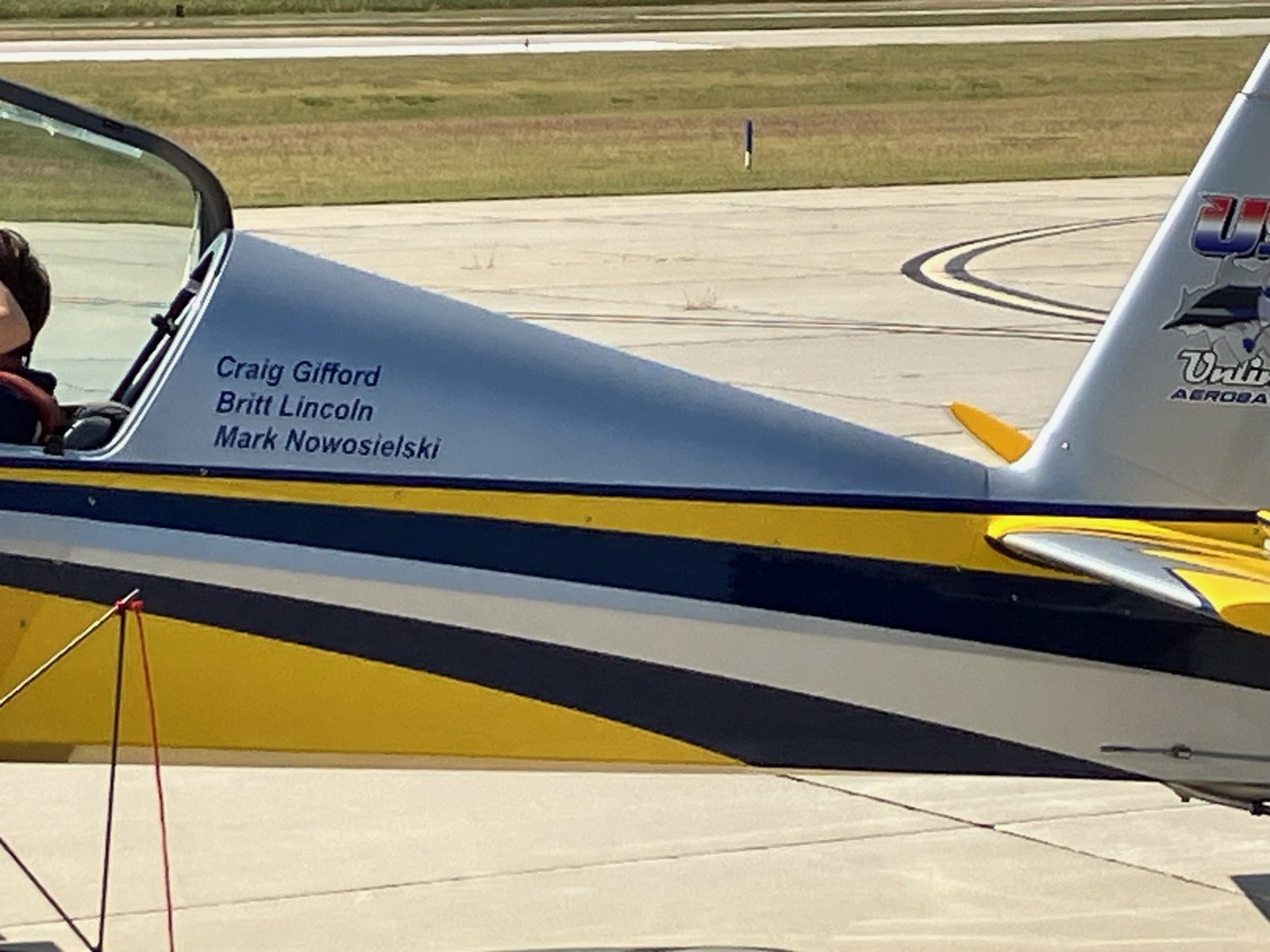 On the bright yellow plane were three pilots’ names, but one pilot had been killed in an airshow a few