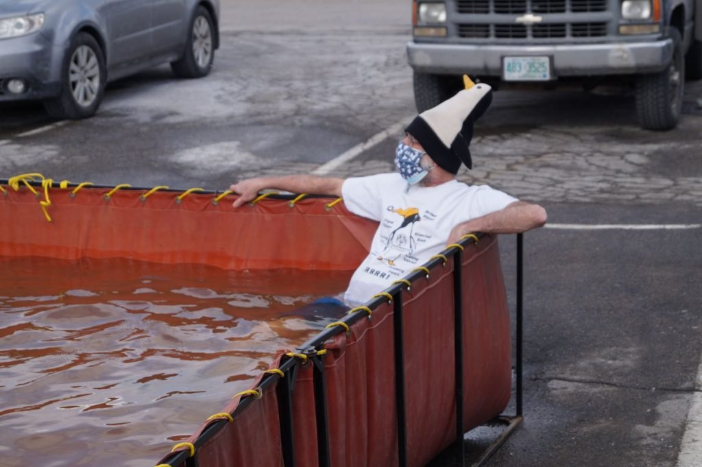 Individuals and teams from across the state usually gather at Hampton Beach the first week of February to take an icy plunge. With the COVID pandemic, they sought out an alternative. That option took place in the parking lot. Approximately, 25 people from 3 area teams with help from the Keene Fire Department, who provided a portable water tank instead of the icy waters of the Atlantic. Folks climbed in a few at a time, dunking themselves to the cheers of a socially distanced crowd.
