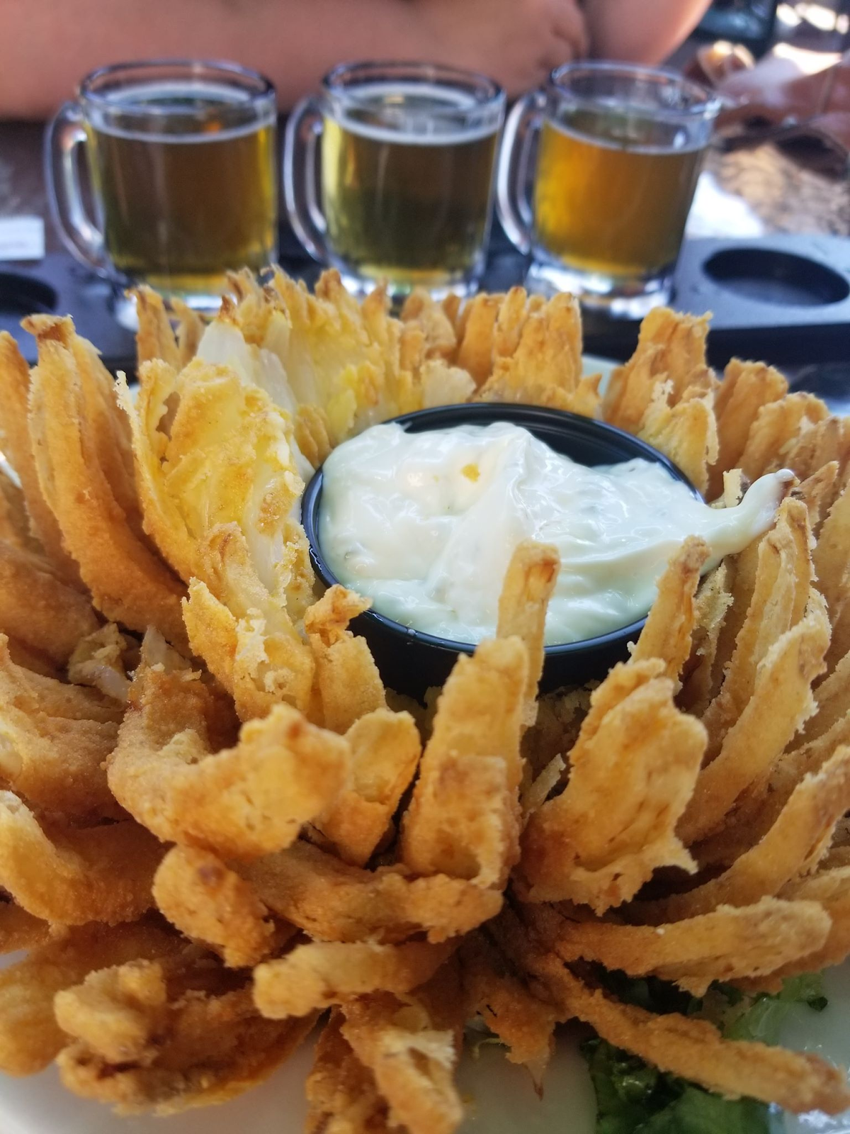 While at Woodstock Inn Brewery, Our entire group ordered a flight. We wanted to sample as many of Woodstock’s brews as possible. We sat on their patio. There you will find their outdoor bar, large shade trees to sit under. When you order a flight you get to choose five 3oz samples of beer. It was hard to narrow in my choice of brews. There were so many to choose from. I was glad when my friends also got a flight. More to sample. My flight didn’t express all the colors of the rainbow. I ended up choosing a lot of lighter ales, a few ambers and a couple IPA’s. I enjoyed them all. My choice of flavor pallet was based on fruity. I was looking for something light and refreshing for a hot summer day. I didn’t want anything to heavy as I knew I was going to be hiking some trails along the Kancamangus after lunch.